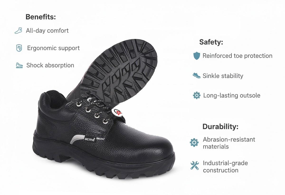 Explore Acme’s high-quality industrial safety shoes for the steel industry. Renowned as one of India's top safety shoe brands, Acme ensures superior protection and comfort.